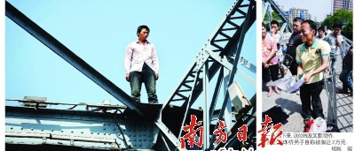 海珠橋,儼然成了“跳橋圣地”。現場幾位媒體同行揶揄說,全城應該集體封殺海珠橋。是的,同樣是這個殘疾男人道出了大多數跳橋者的心聲,“只有這里,才能吸引社會的關注。”每一次海珠橋跳橋秀,全城媒體幾乎都要出動。