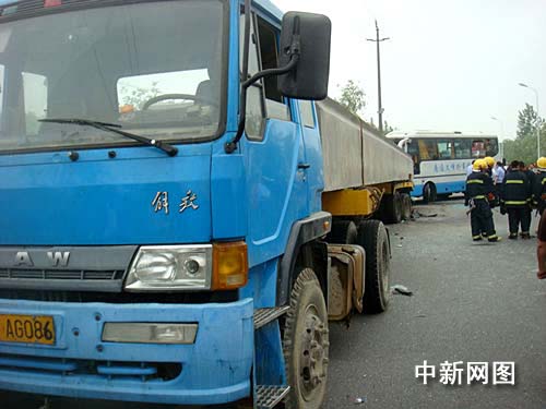 中新網江蘇通州5月12日電(孫翔鳴 張軍 張于)五月十二日上午九時許,江蘇省通州市石港鎮五平線陸家橋路口,一輛大客車與一輛貨車相撞,造成兩人死亡,十四人受傷。