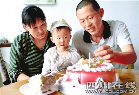 “祝你生日快樂……”昨日下午,成都龍泉西河鎮一農家小院里,在去年地震當天出生的小男孩何震生迎來1歲生日,左鄰右舍紛紛前來道賀。小震生“咯咯”地笑著,一刻也閑不住,用胖嘟嘟的小手到處亂抓。