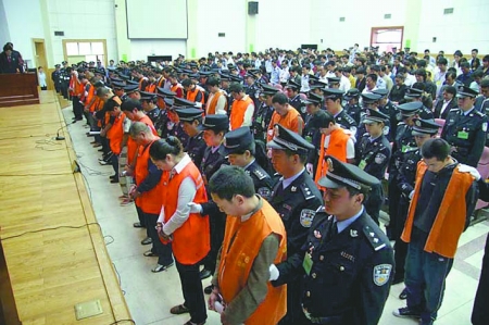 在當(dāng)?shù)剞Z動(dòng)一時(shí)的白玉崗黑社會(huì)性質(zhì)組織犯罪團(tuán)伙,昨天在南陽(yáng)市中級(jí)人民法院受審,27名成員被指控犯有多種罪名。