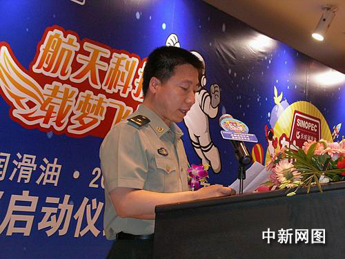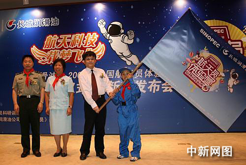 中新網(wǎng)成都5月21日電(記者楊杰)21日下午,航天英雄、中國(guó)航天員科研訓(xùn)練中心副主任楊利偉將軍等嘉賓在成都向來(lái)自“5•12地震”震中映秀的李俊鵬同學(xué)授航天員體驗(yàn)營(yíng)營(yíng)旗,拉開(kāi)了“長(zhǎng)城潤(rùn)滑油• 2009年中國(guó)航天員體驗(yàn)營(yíng)”四川招募活動(dòng)大幕。這是“中國(guó)航天員體驗(yàn)營(yíng)”首次在四川地區(qū)公開(kāi)選拔營(yíng)員,10名幸運(yùn)者將在暑期當(dāng)一回實(shí)實(shí)在在的“太空人”。