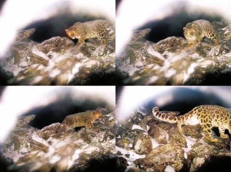 “從照片看,這些雪豹應該至少是兩只。”臥龍?zhí)貏e行政區(qū)資源管理局副局長徐海斌特別興奮,據(jù)他說,從照片上看,拍攝的應是成年雪豹,且體型健美,毛色發(fā)亮,做掌握方向“舵”的尾巴靈敏,特別是眼睛兇猛異常,證明其身體健康狀況十分不錯。據(jù)了解,今年臥龍同北京大學合作的監(jiān)測項目中,他們首次在海拔4400米以上安裝了兩臺700萬像素的紅外線相機,也是專門加強對雪豹等珍稀野生大型肉食性動物的專項監(jiān)測,沒想到未滿半年就有了收獲。