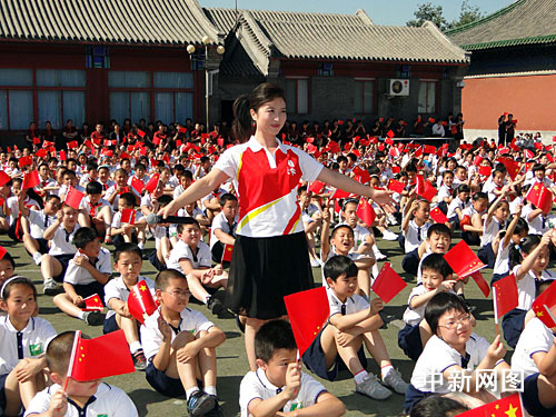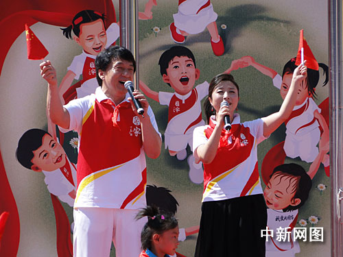 中新網(wǎng)5月31日電 5月31日,國慶獻禮歌曲《國家》的主唱成龍、劉媛媛分別來到北京市七一小學(xué)、府學(xué)小學(xué)及中國兒童中心,與孩子們共同參加了形式各異,精彩紛呈的慶六一活動。