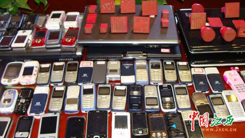 近日,南昌市公安局西湖分局刑偵大隊成功摧毀了一個以臺灣籍人員為主的利用電話中獎詐騙海外華人的犯罪團伙,抓獲犯罪嫌疑人24名(其中臺灣籍人員11名)破獲系列詐騙案件200余起,涉案金額達5000余萬元,現已查扣銀行卡40余張,繳獲涉案贓款1400余萬元、帳本11本、 作案用電腦8臺、手機近百部等工具。