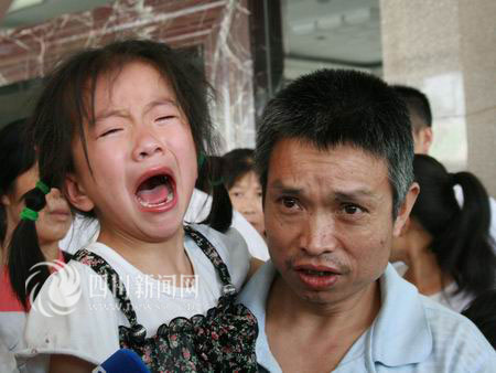 在成都軍區總醫院,記者見到了從這場慘烈事故中幸運逃生的祖孫倆。哇哇大哭的小女孩依然驚魂未定,不停地叫著媽媽,抱著她的是她的叔公陶守良。陶大爺告訴記者,小女孩的媽媽并沒有在出事的車上,小女孩只是嚇壞了,他和小女孩都只是跳車時碰傷了一點,“但我的老伴還在接受醫院的搶救!
