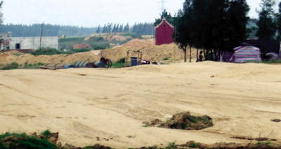 霞坡大村一康姓村民說,早在2006年原村民小組長在任時,曾有外地人提出在該村邊采礦,遭到村民的反對,只采了幾天就停工了。去年,新一屆村干部上任后,有的村干部同意將地租給他人采礦。從今年3月底開始,一些不法人員進入該村離大海約1.5公里處的村邊林地,砍毀了大片茂盛的速生林,架起采礦機械,搭起簡易工棚,大肆抽取沙土里面含有鈦等金屬的黑、黃色礦砂。自此以后,原先保護良好的生態(tài)環(huán)境遭受到了嚴(yán)重破壞,大片的沙灘地被挖塌了,村邊林地被挖成大深潭,對孩子們的安全構(gòu)成了很大的威脅。