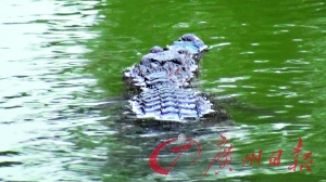 小區人工湖內竟然有鱷魚!近日,家住南海鹽步雍景豪園的居民走過湖邊時都怕怕的,小區內的人工湖里突然出現鱷魚的身影,目前發現共有3條,小的有1米長,最大的有1.5米長。