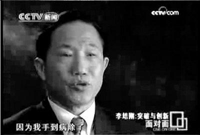 節目介紹說:“我們剛才看到李培剛用手治療的方法,叫‘李培剛醫學新療法’,是2003年中國醫師協會命名的。這是李教授在30多年的骨科臨床醫學研究中……總結出的一種新的醫學理論和治療手法。”李培剛還強調,自己是西醫,以前是做手術的,一天中醫也沒學過。