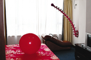 五十多平方米的房間內(nèi),燈光溫馨曖昧,一張大紅床格外引人注目,情趣用品一應(yīng)俱全。記者看到,跟一般的酒店里陳設(shè)不同的是,房間里有很多奇形怪狀的家具。據(jù)周某介紹,除了床是電動床以外,還有歡樂椅、情趣球、S形沙發(fā)等。“這些可不是體操運(yùn)動器材,而是情趣酒店的特別設(shè)施,專門供夫妻情侶性生活用的。”
