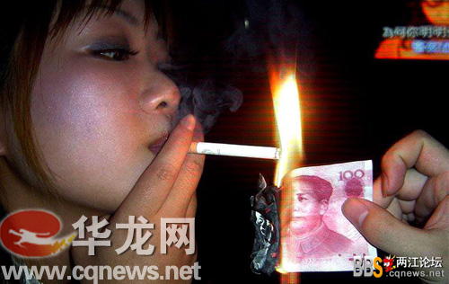網(wǎng)友曝90后女生燒人民幣點煙行為