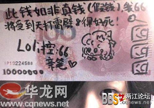 今天上午,華龍網(wǎng)兩江論壇一則《90后女生如此對待RMB》的帖子,引起網(wǎng)友的極大關注。該網(wǎng)友曝一位90后的女生,用百元人民幣點煙,除此之外,還在人民幣上畫各種稀奇古怪的圖片等等。不少網(wǎng)友跟帖痛批該女生。