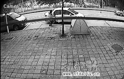 監控錄像顯示,昨日上午10時22分20秒,一輛白色廣本飛度緩緩停在東城街道東平街旭陽冷氣店外的馬路上。一名身高1.75米左右、身穿休閑衣服、腳著運動鞋的男子,從副駕駛室下來,不動聲色地走進旭陽冷氣店。監控錄像還顯示,廣本汽車里人頭晃動,車內至少有4名同伴。