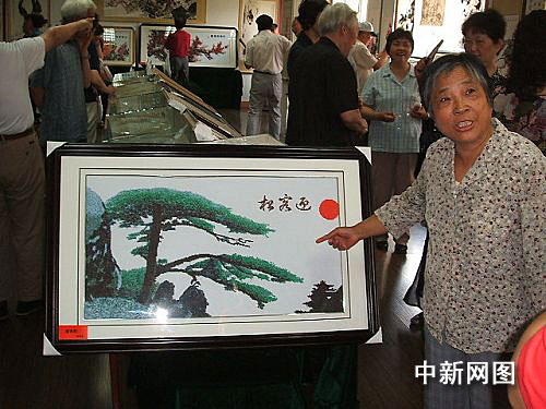 中新網(wǎng)鎮(zhèn)江七月一日電 (李君 王致同) 這是一幅長一米、寬六十厘米的《迎客松》圖,遠(yuǎn)看似乎是照片或油畫,近看確是十字繡品,圖上繡成的翠柏勁松,傲然挺立,引人入勝。令人們難以置信的是,繡品作者竟然是鎮(zhèn)江市八十高齡老翁徐菊生。昨天,作為老人獻(xiàn)給共和國六十華誕的這幅十字繡品《迎客松》,在鎮(zhèn)江市老年活動(dòng)室“露臉”,令人驚嘆不已。