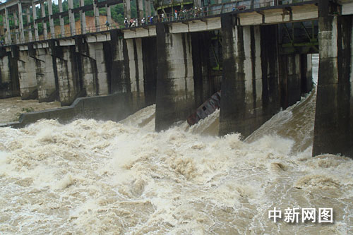 中新網柳州7月4日電 (莫洪立 王剛)廣西柳州市三江縣一艘挖沙船只,兩天前在湍急的河水中撞向厘金灘大壩,嚴重影響大壩安全。目前,挖沙船仍被卡在大壩水泥柱間,若不及時清除,眾多積累物將使大壩有潰壩之危。