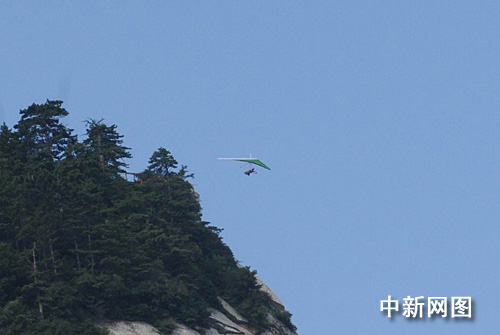 中新網陜西華山7月18日電(記者 冽瑋 )7月18日上午,號稱“中國第一飛人”、年已66歲的衣瑞龍駕駛無動力三角翼滑翔機成功飛越了西岳華山。他是目前中國用三角翼飛翔的第一人,是至今國內飛過高山最多的探險家,也是他第五次飛越這座被譽為“天下奇險第一山”。