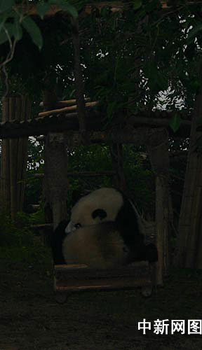 九點十三分,天更加黑了,記者發現,其中一只大熊貓朝著獸社走去。飼養員侯桂芳告訴記者,日全食天完全變黑的瞬間,大熊貓表現得比較興奮,在幼稚園到處跑,估計可能是屬于比較煩躁,但是很快它們就適應下來,那只往獸社走去的熊貓,估計是因為它感覺天變黑了,應該要回家了。