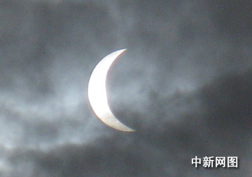 8:30分,在這座“黃河第一橋”中山橋及其廣場上,在人們紛紛抬頭仰望時,太陽光亮逐漸暗淡;8時45分,天空出現大量薄云。伴隨云層越來越厚,天空變暗時,西北師大符彥飆博士說,有薄云和空氣的輕度污染,觀測相切不是很明顯;9時15分時,從蘭州可觀測到食甚,月球遮住太陽光面積達到最多,太陽“缺掉”80%。
