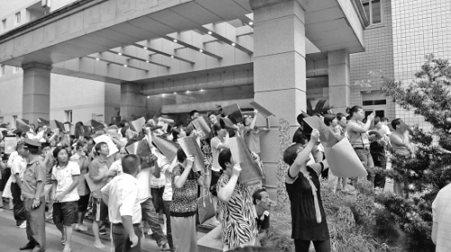 讀者方序:日食開始時,浙醫(yī)二院一對母女提著鹽水瓶到外面觀看。