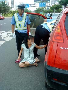 昨日上午,?谑泄簿纸痪ш犔厍诖箨犆窬邶埨ツ下泛图t城湖路一帶對交通違法情況進行檢查。上午9時30分許,一輛車牌號碼為瓊AE××60的哈飛路寶小轎車從紅城湖路拐向龍昆南路,沿省婦幼保健院路段行駛。在紅城湖路拐彎處,執法交警看到該車駕駛員未系安全帶,于是在該車行駛到省婦幼保健院門口路段時,示意該車停下接受檢查。