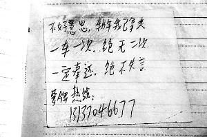 6月12日早上,洛陽市公安局澗西分局第一責任區刑警隊接到幾名出租車司機報案,稱他們的出租車牌照夜晚被盜,并且每輛車上都發現一張紙條,上面寫著:“撿到貴車牌,聯系電話1××××××××××,誠信是金。”他們打電話過去,接電話的男子要求他們往一張銀行卡上各打進100元,然后就告訴他們車牌在哪里。