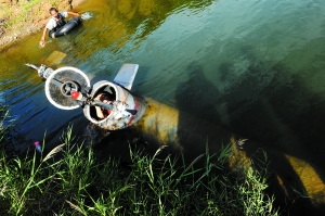 時間:9月9日 地點:房山區一湖畔 事件:農民工自制潛艇試水