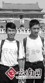 用了近半年時(shí)間,行程達(dá)萬(wàn)余里,從云南臨滄市云縣徒步啟程,途經(jīng)廣西、湖南等7省(區(qū)),最終趕在新中國(guó)60歲生日前順利到達(dá)首都北京。從今年3月開始,云縣的楊世和及兒子楊澤泳,帶著家鄉(xiāng)人對(duì)祖國(guó)的祝福,以“徒步”的獨(dú)特方式喜迎新中國(guó)成立60周年。