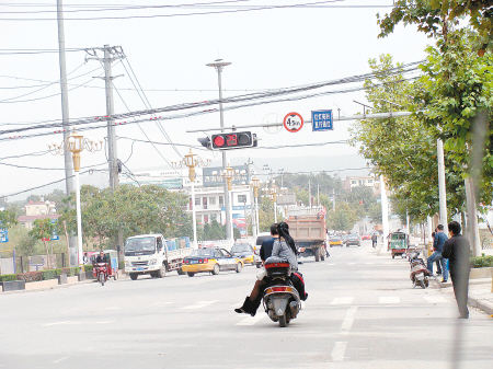 10月8日,一位從華山大街向東行的外地司機(jī)把車停在民生街丁字口的紅燈前,不知道如何是好。原來(lái)前方的紅燈亮著,但是旁邊的藍(lán)牌子上卻寫著“紅燈亮?xí)r 直行通過(guò)”,他看著身邊的車既有飛馳通過(guò)的,還有停車觀望的,更多的是半停半走猶豫不決的。所以不知道該怎么辦。而渭南的出租車司機(jī)老胡說(shuō),這個(gè)紅綠燈堪稱“最牛”,設(shè)立得根本就不科學(xué),設(shè)立這么一個(gè)牌子,難道旁邊還要再加個(gè)牌子說(shuō)綠燈亮?xí)r繼續(xù)通行?當(dāng)?shù)厝舜蠖济靼祝@個(gè)紅綠燈設(shè)立的目的是限制向北拐的,只要把紅綠燈設(shè)置個(gè)向北的箭頭就可以了,而弄個(gè)紅燈加個(gè)說(shuō)明有些自相矛盾。記者查閱《中華人民共和國(guó)道路交通安全法》,第二十六條規(guī)定:“交通信號(hào)燈由紅燈、綠燈、黃燈組成。紅燈表示禁止通行,綠燈表示準(zhǔn)許通行,黃燈表示警示。”