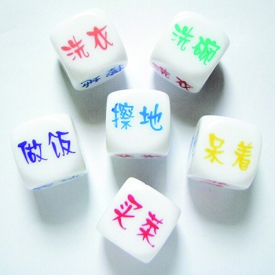 “有人說,沉迷麻將的女人很可怕,我要說,不打麻將還要買骰子的女人更可怕”。80后重慶網(wǎng)友“莫莫”是一媒體記者,他在近日的一篇博客中寫道,自己老婆買回來的骰子,連澳門賭場骰子王看到都要嚇出冷汗,骰子有五面分別是:買菜、做飯、洗衣、洗碗、擦地,只有一面是發(fā)呆。