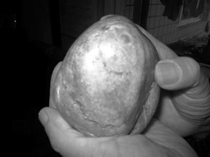 記者注意到,這塊黃白相間的石頭形狀與我們從書中看到的馬克思頭像十分相似,有“馬克思的嘴”、“馬克思的鼻子”、“馬克思的胡須”。“這些圖案都是天然生成的,我運氣太好了!睘榱吮Wo它,陳國良還特意在石頭表面抹了一層營養霜。據陳國良介紹,“馬克思”是9月4日他在人民北路一段路口撿到的,他準備終身收藏。(胡莉)