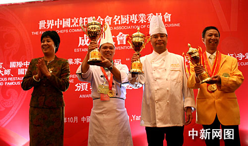 來自韓國、新加坡、荷蘭、日本、美國等10個國家及地區(qū)的40名廚師,經(jīng)過激烈的角逐,經(jīng)世烹聯(lián)國際評委分別從“味道”、“質(zhì)感”、“觀感”和“衛(wèi)生”四個方面,評出最佳創(chuàng)意獎、最佳造型獎各1人和國際中餐廚王金獎9人、銀獎12人和銅獎12人。澳門廚師張志歡、福建廚師胡滿榮、 澳門廚師呂家祥位列前三名,分別榮獲冠軍、亞軍、季軍。同時,臺北開平餐飲學(xué)校15歲學(xué)生宋浩廷)獲大賽最佳創(chuàng)意獎、韓國金賢姬獲最佳造型獎。