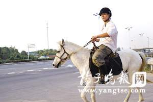 此人為什么總騎馬上路?昨日下午,記者找到了這名騎馬上班的小伙子徐某,小徐所在的單位是一家日資企業,原先他出門時都用一輛小型越野車代步,從家到單位開車也只要5分鐘時間。自從騎馬上路后,他的車就停在家里很少開了。當記者問他為何騎馬上下班時,他顯得有些靦腆。小徐介紹說,他是一位馬術發燒友,特別愛好騎馬,當他得知有一個朋友養了幾匹馬后,他一有空就會去朋友那騎馬。小徐告訴記者,10月4日,他家里有一個親戚結婚,他就向朋友借了一匹馬騎去喝喜酒,當他騎著高頭大馬出現在眾賓客面前時,親友都驚呆了。“當時的回頭率真高,吸引了眾人的目光,大家都很好奇。”小徐說,從那以后,他還經常騎馬出門辦事。單位領導還給了他一塊草地用來拴馬。