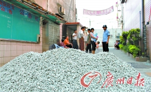 昨天早上7時,家住順德區(qū)容桂恒順閣小區(qū)的桂婆拄著拐杖去買菜,剛走到小區(qū)門口時就愣住了:狹窄的小道被一堆1米來高的碎石堵得嚴嚴實實。該小區(qū)50多戶居民只好在碎石邊鏟出一條小道,但是小區(qū)內仍有多輛私家車受堵開不出去。
