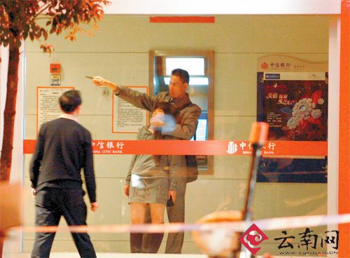 10月31日22:30左右,昆明市北京路一自助銀行內,一男子挾持一名婦女,正在與警方對峙。