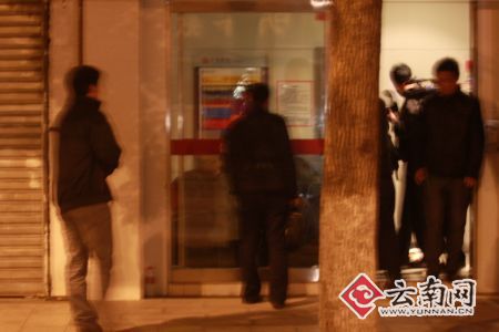 發生案件的中信銀行自助銀行位于昆明市鼓樓醫院門口。記者趕至現場時。事發現場已被警方封鎖,警察和特警正密切監視著自助銀行內的舉動。警方還對昆明市北京路與穿金路交叉口(圓通大橋路口)與北京路龍騰酒店一段道路實施了雙向交通管制。不過,在交警的疏導下,交通仍較順暢,南北雙向交通均未出現堵車現象,F場聚集了不少圍觀人員,執勤民警不停地勸說大家盡快離開,不要圍觀。