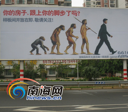 。êD希┖?诤5閸u某樓盤廣告內(nèi)容與人類進(jìn)化掛鉤,看到該廣告的市民都覺得受了莫大的侮辱,認(rèn)為該廣告有辱公民道德風(fēng)尚,要求相關(guān)部門依法取締并查處。然而記者進(jìn)一步調(diào)查發(fā)現(xiàn),該廣告已通過工商部門審批,核發(fā)了許可證,網(wǎng)友直指該廣告低俗。