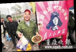 前日,劉光建離渝前往四川,人稱“活雷鋒”的他,發(fā)誓要走遍全國,用擦鞋招徒來宣傳雷鋒精神。“在重慶近兩月,發(fā)現(xiàn)重慶人個個是熱心人。”劉光建告訴記者。