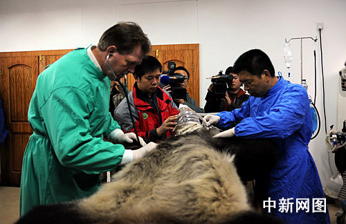 11月24日,來自澳大利亞阿德萊德動物園獸醫專家與四川臥龍中國保護大熊貓研究中心專家,在碧峰峽基地為即將啟程赴澳大利亞參與合作研究的“網網”和“福妮”做了出發前的綜合性體檢。專家們通過對“網網”和“福妮”進行血液、體格、五官、消化系統、被毛系統、臟器B超等全面的身體檢查,初步確定兩只大熊貓體格健壯、發育良好、非常健康。