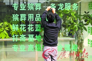 昨天開始,廣州市民政部門會同市公安、交委、衛生、工商、物價等部門展開兩天的聯合行動,集中整治殯葬服務代理市場。檢查中發現殯葬服務中介公司多打出提供“一條龍辦喪服務”的口號。殯管部門表示,這是違規而且也是不可以做到的。同時,對于殯葬黑中介“宰”喪主這種雪上加霜、有背社會公德的行為,殯管部門將堅持打擊。
