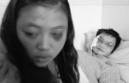 昨日下午,郫縣人民醫(yī)院外科病房內(nèi),面容憔悴的吳慧明靜靜地躺在床上,他右耳處粘滿紗布,雙眼青紫腫脹。病床邊,左眼青紫紅腫的王英蘭,正輕輕地按摩著吳慧明剛剛打完點(diǎn)滴的左手背。四目相對(duì)間,滿是愛意。情侶間的溫馨一幕,令病友們感動(dòng)。但他們并不知道,幾天前吳慧明竟然遭遇了“似乎死過一次”的痛苦……