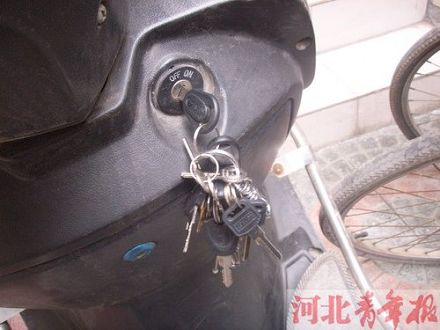 張先生大喊“抓賊”,結(jié)果對(duì)方扔下車便跑。張先生趕到車旁一看,發(fā)現(xiàn)正是自己的電動(dòng)車,車電源鎖上還插著一大串鑰匙。