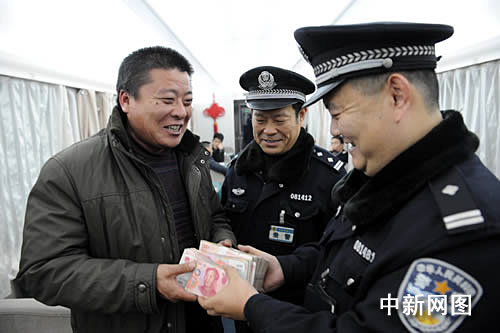 獲知十二萬元巨款找到的消息后,忐忑不安的孟先生終于一塊石頭落了地。當晚,孟先生和同事返回徐州,并送上了一面錦旗。在車上,乘警將十二萬元現金交到了孟先生的手中!罢鏇]想到,錢還能找到,還是咱們警察負責,為老百姓著想!”喜笑顏開的孟先生連聲贊嘆。(完)