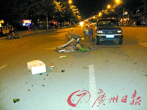 16日凌晨2時左右,根據(jù)肇事司機溫某的詢問筆錄,15日晚,他與朋友在高要市金渡鎮(zhèn)吃飯,并“喝了3杯啤酒,以為沒什么事。”16日凌晨他開著小貨車行至端州六路與八一路交叉口附近,將兩輛三輪車連車帶人撞翻在地。