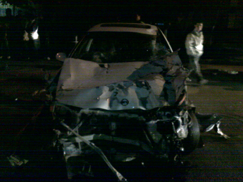 據目擊者介紹,事故發生時白色尼桑車正由南向北高速行駛,突然撞破路中央隔離欄后駛向對向車道,行進過程中轉了幾個圈后在對面車道的路中央方才停住。在此過程中,被撞飛起的隔離網部件正好擊中迎面駛來的一輛小型貨車,導致小貨車受損,貨車駕駛員頭部受傷。