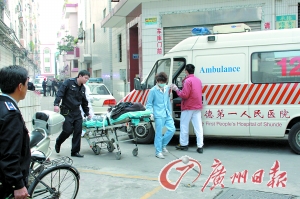 “送他去醫院!”民警的話音剛落,6名醫護人員合力把該男子抬上了擔架。