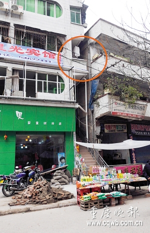臨街商鋪老板們介紹,7日下午5時30分,何永坤帶著妹夫戴明、工人張明來到賓館,在3樓安裝熱水器管道。原本是張明站在3樓陽臺石欄上安裝,可不知何故,何永坤讓張明退下,自己上了石欄安裝。