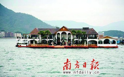近日,深圳南澳東山灣一棟面積多達(dá)7000平方米,耗資近億元的海上別墅存在五六年之久,卻一直沒(méi)有取得海域使用權(quán)證,被指是一棟“海上違建”(見(jiàn)上圖)。昨天下午,該別墅主人郭奎章在其“海上皇宮”內(nèi)首次公開(kāi)回應(yīng)媒體,稱該別墅是省海洋部門(mén)同意的旅游試驗(yàn)項(xiàng)目,不屬于違法建筑,也不可能拆除。