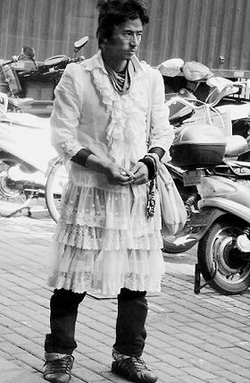 “小白”也有神智清醒的時候,他跟“老饞貓”說過這么一句話:“找個女人來愛我。”這正是他經常穿女人衣服的原因。