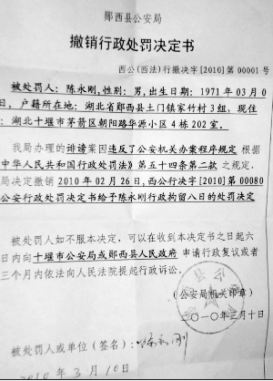 3月10日,十堰市警方公布鄖西警方跨縣拘留發帖人案復核結果。認定該案的辦理違反了公安機關辦案程序規定。隨后,鄖西縣政府和縣委書記連發網絡聲明,責成縣公安局對陳永剛道歉并吸取教訓。