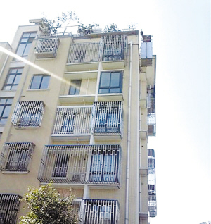 在宜興市區(qū)金城花園靠東面的居民樓,一幢五六層高的房屋吸引了不少人的注意,房屋頂層一個鐵箱子高高地懸掛在這幢樓的外墻上,記者仔細觀察了一下發(fā)現(xiàn),這個鐵箱子是用不銹鋼做的,空中有四根鋼纜從樓頂拉下來,緊緊地固定在地面上,鋼纜通過滑輪可以上下滑動,箱體上還有兩扇玻璃窗,儼然是一個觀光電梯。據(jù)悉,該電梯是頂樓用戶自行花錢安裝的,也僅供該戶人家獨自享用。