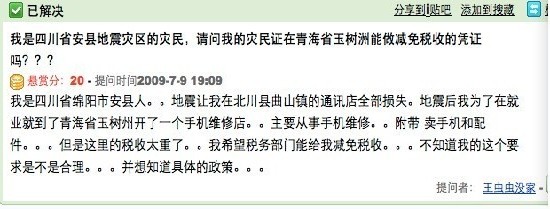 玉樹地震發生當日,一位名叫“王蟲蟲沒家”的網友,因為在去年7月百度知道上發出的一個帖子被人重新翻起,而成了數萬網友關注的焦點。這位網友曾經在北川開了一家手機維修店,5.12汶川大地震中北川被震毀,幸存下來的“王蟲蟲”在震后選擇到玉樹州重新創業,并想開一家手機維修店。“王蟲蟲”的這番遭遇,引起了網民的高度關注,“王蟲蟲”也被網友稱為最悲情的人物。因為“王蟲蟲”最后一次上網登錄的時間已是地震一個月前了,他(她)能否再次躲過這一次天災,成了眾多網友關注的焦點。四川在線記者在到達玉樹后不久,想盡辦法找尋這位網友。
